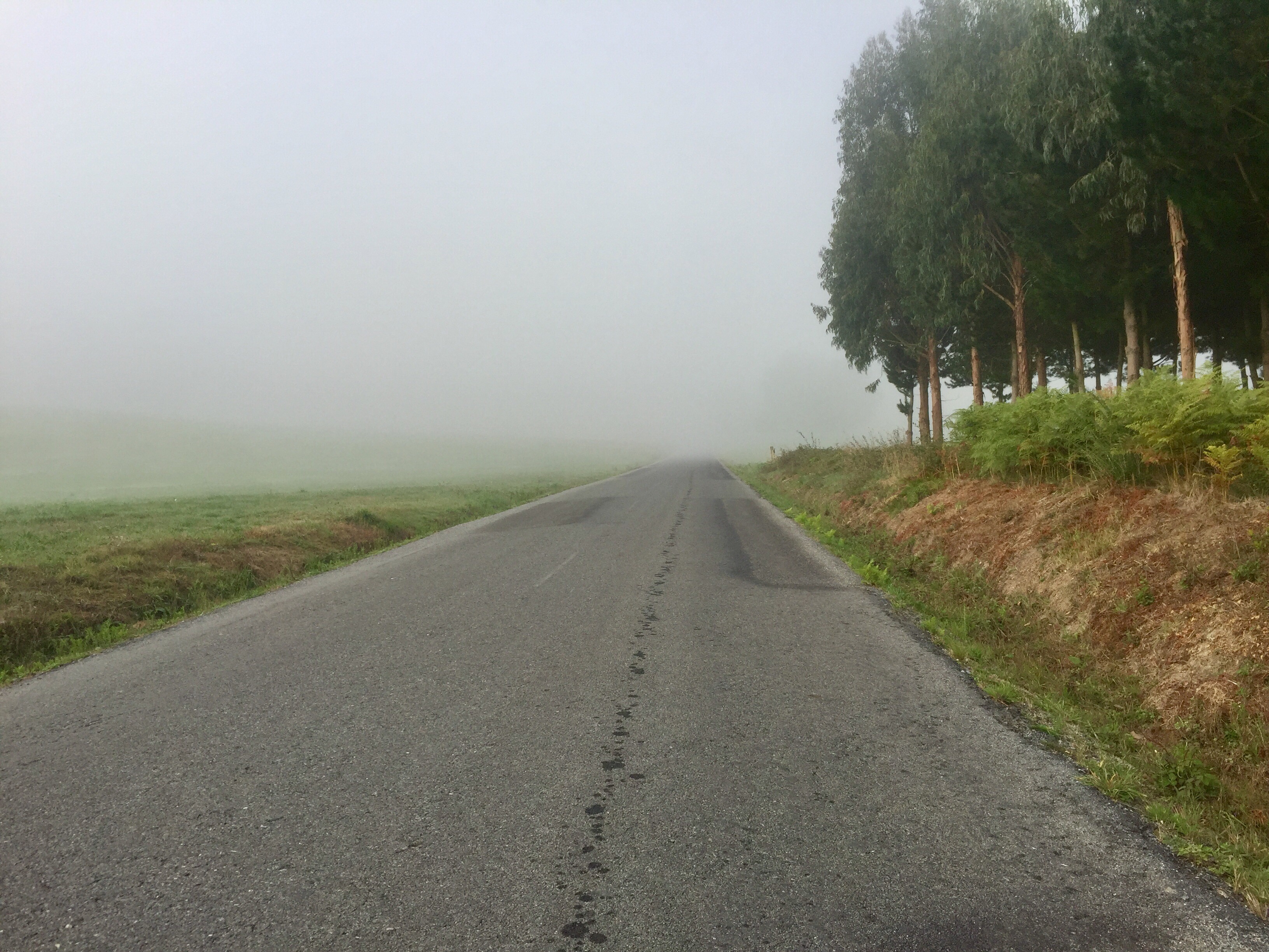 Another two dozen kilometer day! Today, we were treated to John William’s Imperial March from Star Wars as we left Lugo, thanks to a fellow peregrino’s cellphone playlist. It was the ???? consecutive day starting out in a foggy mist, which gives the landscape a serene emptiness and we feel more apt to speak in hushed tones. As we hike, it’s difficult to determine when to remove the waterproof outer layer as we build up warmth; I usually pull a Clark Kent and unzip my jacket to pull it open in the front (and sometimes with gusto – it makes me feel super).
