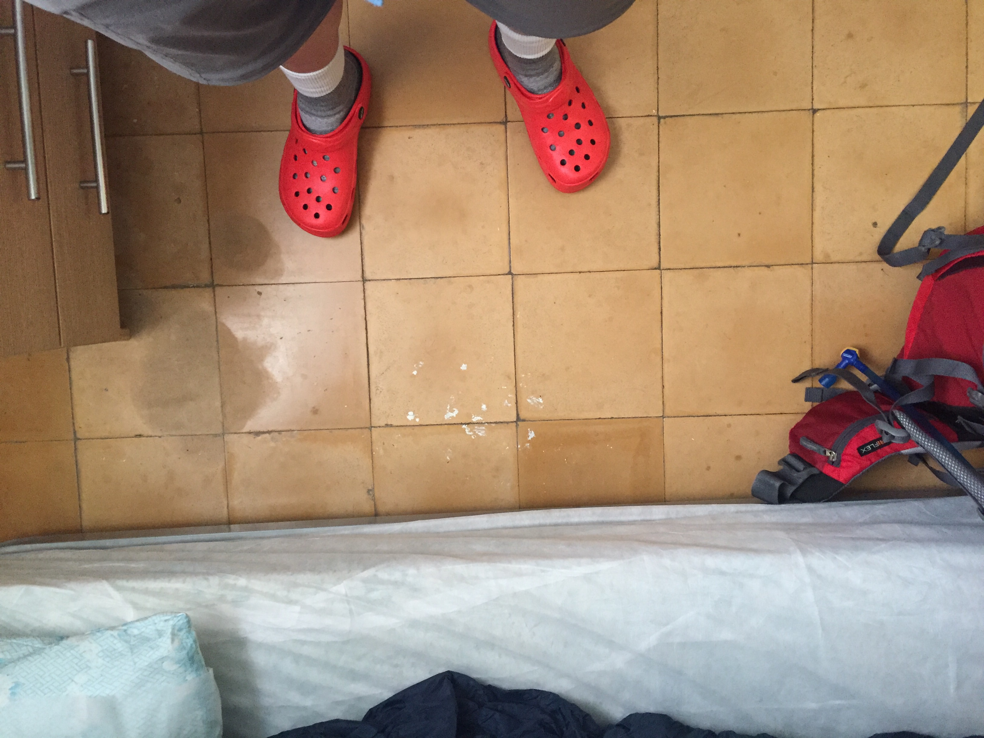 The beds range from sturdy wooden bunks to squeaky metal frames that make grown men rage when they can’t nap peacefully. Showers usually – but not always – offer hot water, a shower head that is taller than you, and a shower door. But we have had a couple showers with no doors and gym-style shared areas. π³ Today’s specific shower sported a broken shower head without a wall mount, scalding water with good pressure, and a motion-detecting light that needed stimulation every 45 seconds. I’m a pretty fast showerer, but even I can’t manage that fast.