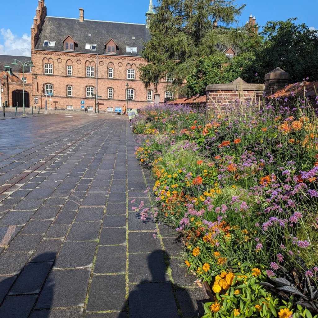 We stopped for a half-hour at the cathedral and I skipped over cobblestones shimmering with morning rain as the sun emerged from behind the clouds. I enjoyed a walk in a flower-lined courtyard with a new friend and took a breath of quiet before we boarded the bus to find excavated Viking ships and ongoing replicas at the Viking Ship Museum.