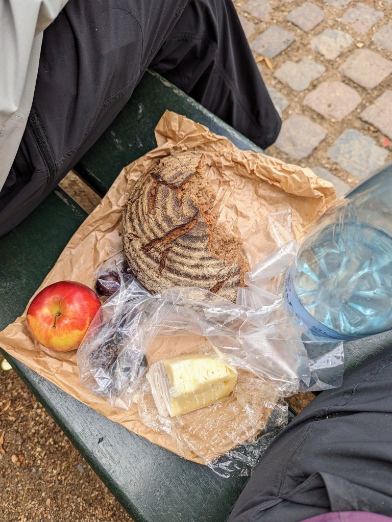 The afternoon had no scheduled activities, so Julie and I strolled along the Strøget for final souvenir purchases, dodging wind gusts and raindrops as well as tourists. Then it was time to take my hunks for a picnic in Ørstedsparken. 😉