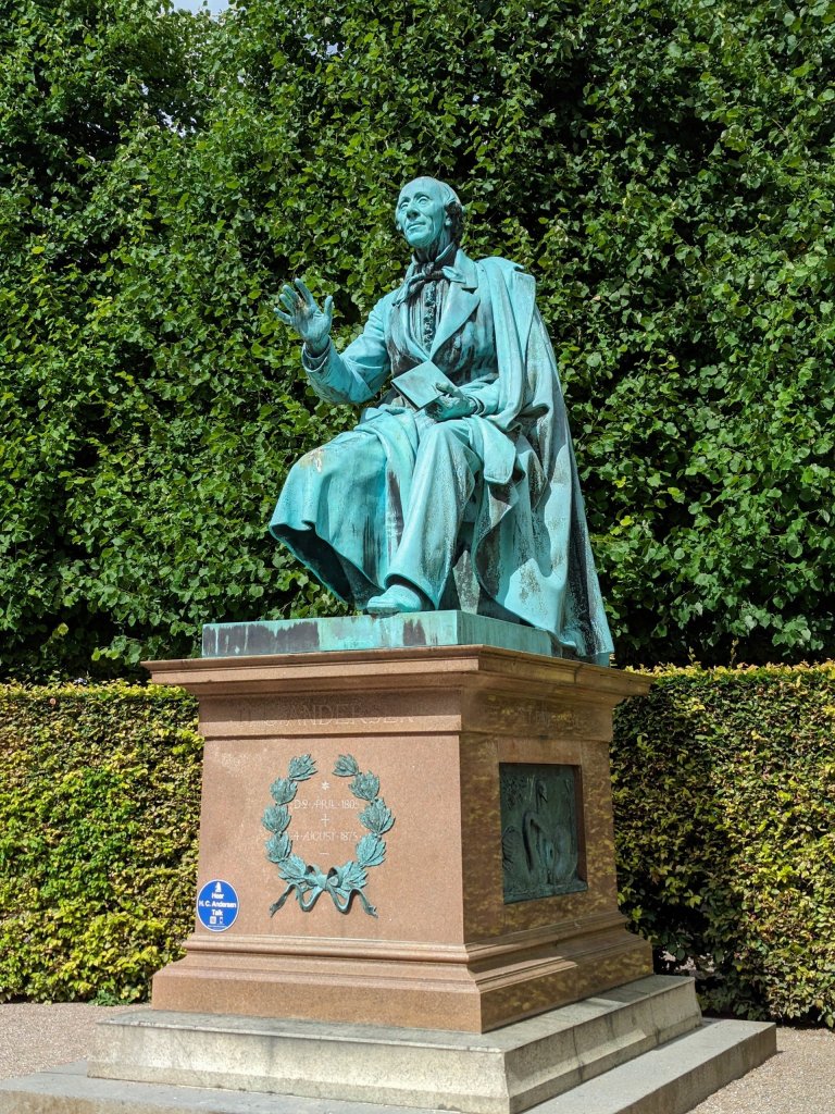 The final to-do of our tour was to find a bookstore for my bibliophile sister. I never dreamed I’d roam a foreign city looking for the bøger, nor that I’d be successful in picking one out. 🤷♀️ With Julie’s backpack one Hans Christian Andersen compilation heavier, we walked along narrow side streets hemmed in by colorful, shoulder to shoulder buildings on our way back to the Rosenborg Palace gardens. Pushed off of one bench by the raindrops, we pressed on and found a hedged-in garden overseen by a friendly bronze rendering of Mr. Andersen himself. Julie shared her dark chocolate bar and I gave my best vocal performance of “The Ugly Duckling” while the author’s likeness looked on.