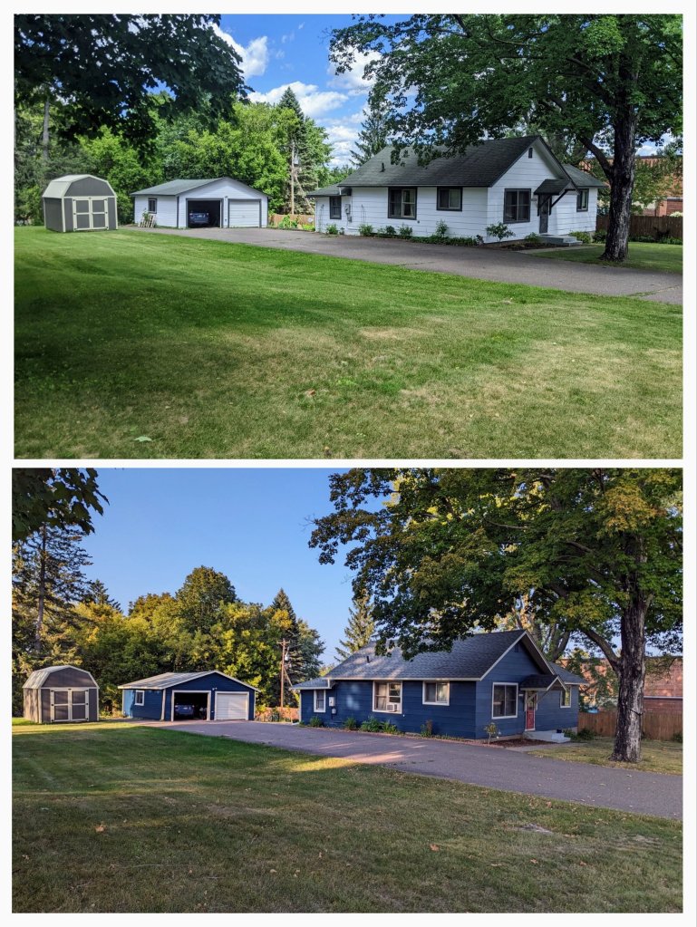 I naively embarked on this DIY adventure in July 2022 after a May hail storm won me a new roof and gutters. The contractor’s insistence that I choose a color for the shingles and gutters – asphalt shingles actually come in more colors than black; who knew? – and my fledgling desire to update my home’s exterior color when I bought the house a year ago, combined with an estimate of $10k to have a professional paint my house, drove me into the local paint supply shop (God bless you for your expertise, Glen) and the world of latex semi-lustre exterior paints. I thought choosing a color would be the hardest part.