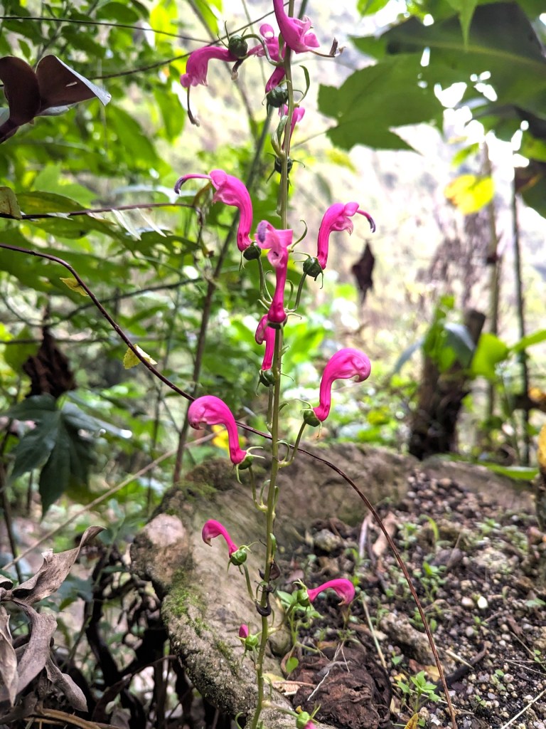 The mist atop the mountains split into tendrils teasing memories from yesterday’s walk in the forest – memories familiar, yet unknown. Memories of birdsong high in the canopy that evoked the cheerio greeting of the American Robin, but with a touch of warbler soprano. A vine of fuchsia flowers reminiscent of sweet peas, but with curving petals grown long by the warmth and wet of a high rainforest. Alpacas grazing on terraced gardens, looking like their goat cousins, but with gracefully elongated necks. Poinsettias that have far outgrown their foil-wrapped plastic pots, spreading into branching trees. Familiar, yet unknown.