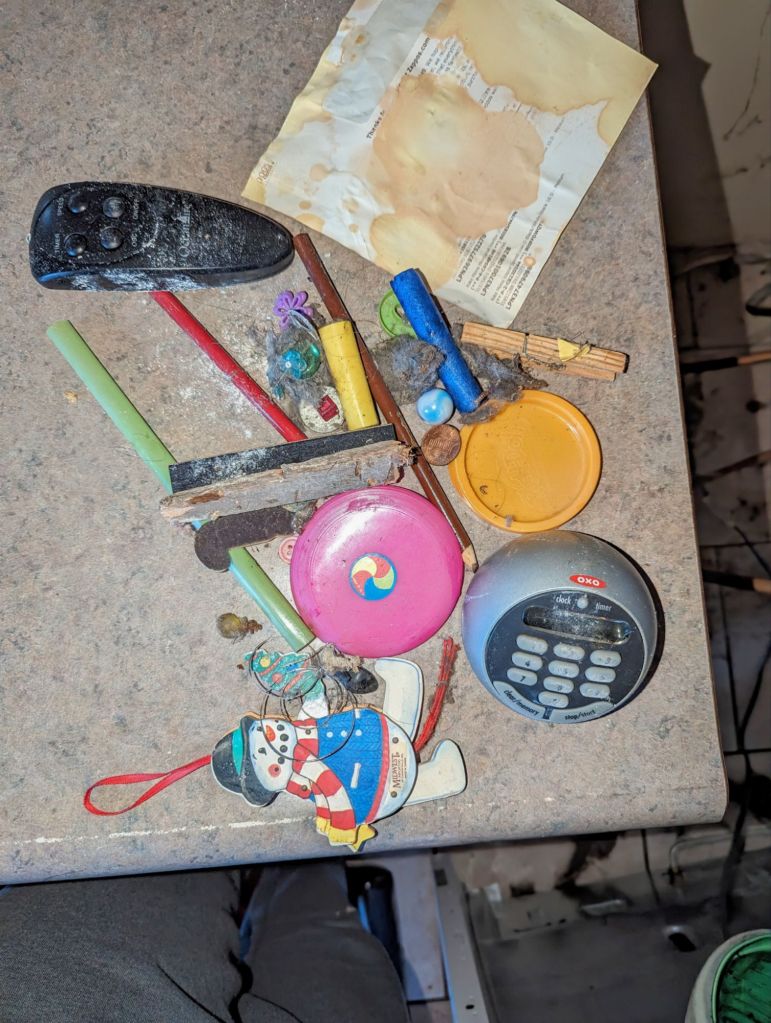 Procrastination to move the stove had also struck the previous owners, evidenced by the oven-shaped outline on the walls – a previous paint color choice shrouded in curtains of clinging cobwebs. The gas lines twisted grotesquely, the coils draped with clinging fibers like Spanish moss in a haunted wood. A colony of dust bunnies thrived in the newly opened den, nestled among treasures considered delicacies by the floor space of a ravenous kitchen appliance: pencils, buttons, marker caps, a Barbie shoe, two nickels, three pennies, one marble, a calendar, and an old alarm clock.