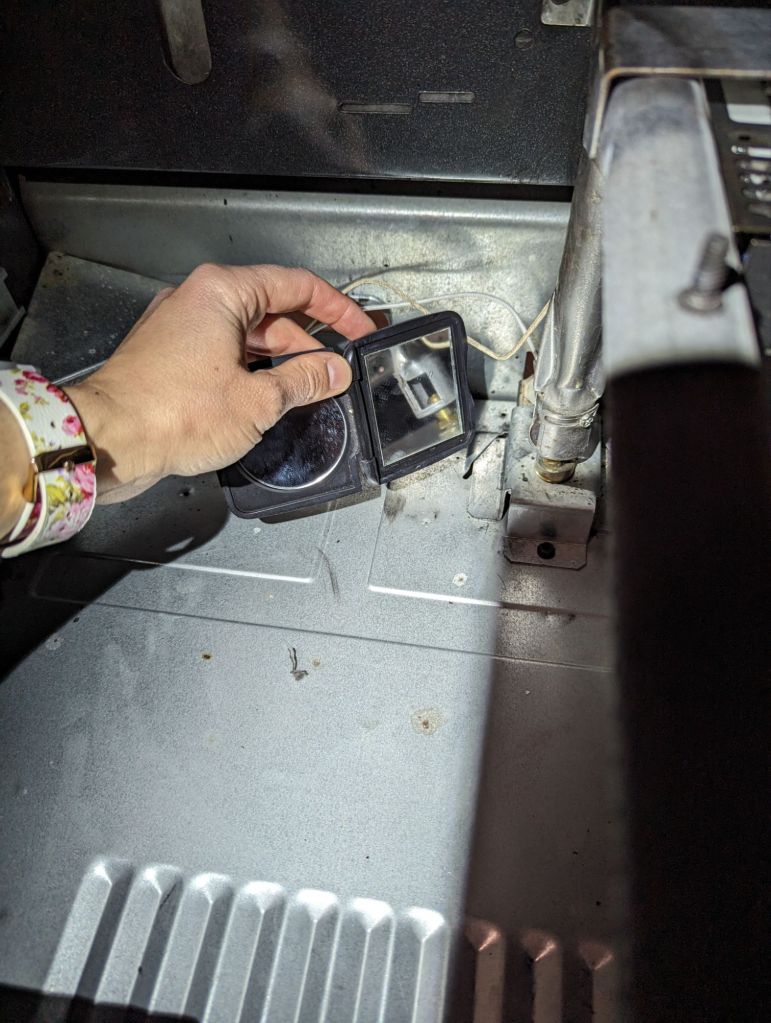 It started simply enough. A scrub brush, water, soap, and vinegar helped me realize that the oven door did, in fact, have a window, and that it is actually transparent! This was enough excitement to move on to the interior walls and ceiling. Before delving into the interior, however, a niggling voice encouraged disconnecting the oven from power and fuel. This is where things got involved.