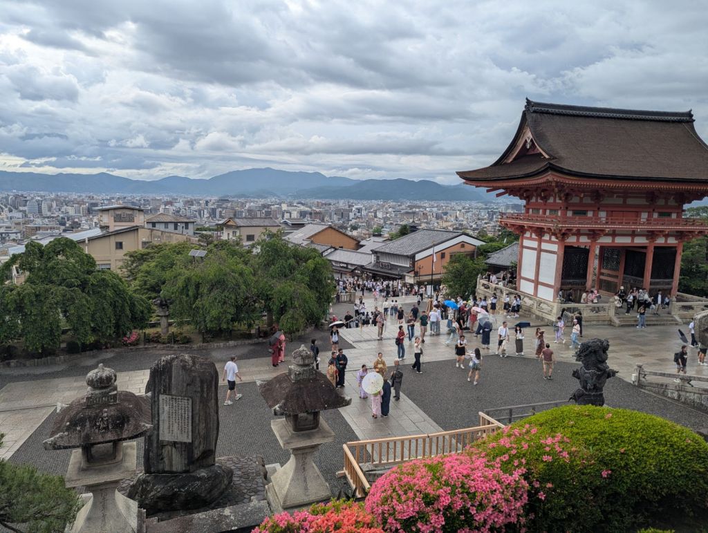 The exhausted travelers slept in until 9 am, then spent the morning doing laundry. The afternoon was spent on a hop on/hop off bus tour which predictably brought us to all sorts of places overflowing with tourists. We waded through a crowd at the Golden Pavilion, got rained on at Kiyomizu-dera Temple, and Jess took more pictures of trees than the famous gold-leafed and vermilion-painted buildings. 🤩🌲🍁