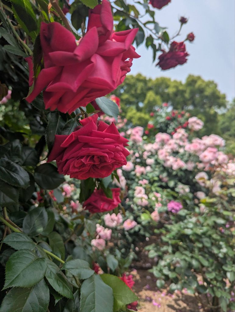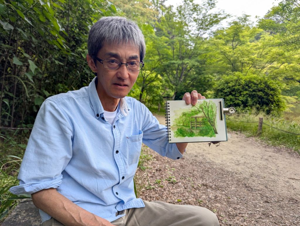 Our afternoon itinerary had been left open, so we scrolled the map and landed on the Kyoto Botanical Gardens as a quiet place to kill some time. Boy were we rewarded! Nancy got lost in the bamboo exhibition and I ogled an expansive garden of roses, delighting in innumerable colors and shapes and sizes with a crowd of octogenarians enjoying ice cream on a Friday afternoon. I eventually pulled myself away from the roses to find a lakeside bench to share with my new friend Yori and his watercolor hobby.