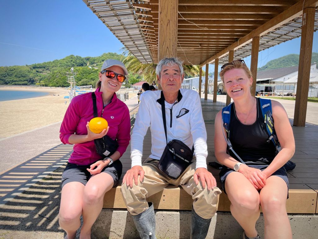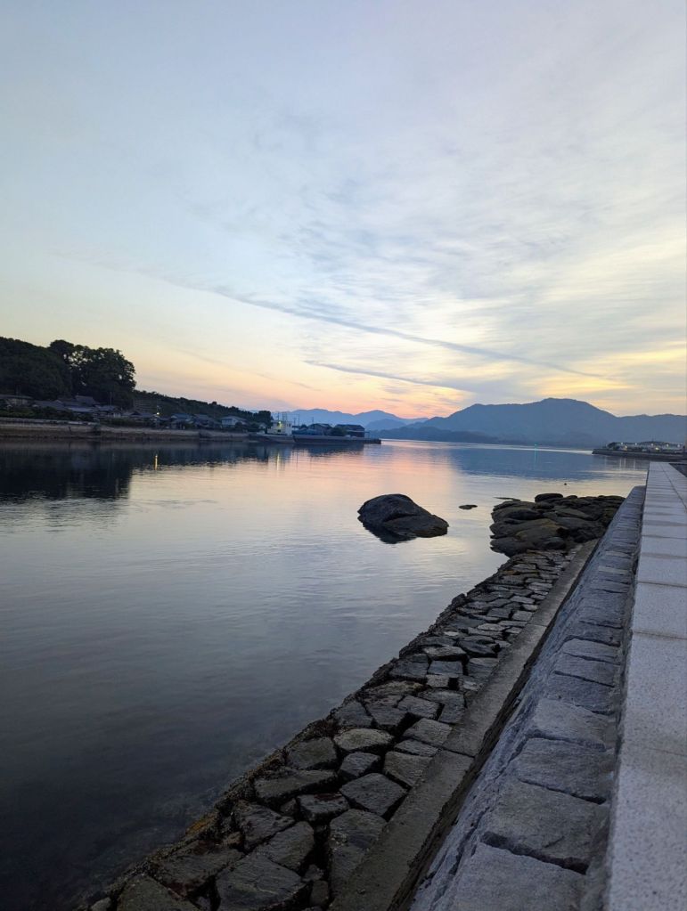 We settled into our ryokan on Omishima Island after a 27-kilometer day, enjoying green tea while wearing yukata and slippers, sitting on the tatami mat floor. Supper was a mishmash of ramen, ice cream, and a bag of shredded cabbage with dressing from the local convenience store. We enjoyed our luxury meal with a view of the sunset over the sea, watching the tide come in while talking about life and its joys and challenges. Of all the glorious things I experienced in Japan, this was one of the greatest. β€οΈ